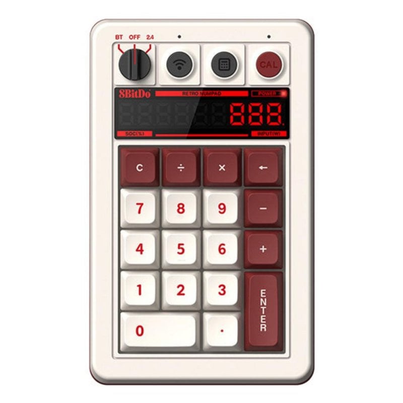 Otimize o seu setup com o Teclado 8Bitdo Retro 18 Fami Edition, um teclado numérico mecânico sem fios com modo calculadora e ecrã LED, perfeito para profissionais e entusiastas de tecnologia que exigem precisão e versatilidade.