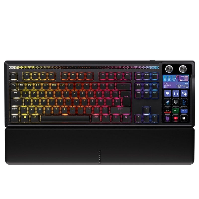 Desbloqueie controlo absoluto no gaming e streaming com o Teclado Corsair GALLEON 100 SD mecânico potenciado com integração nativa Stream Deck, teclas personalizáveis e ecrã LCD para gestão total em tempo real.