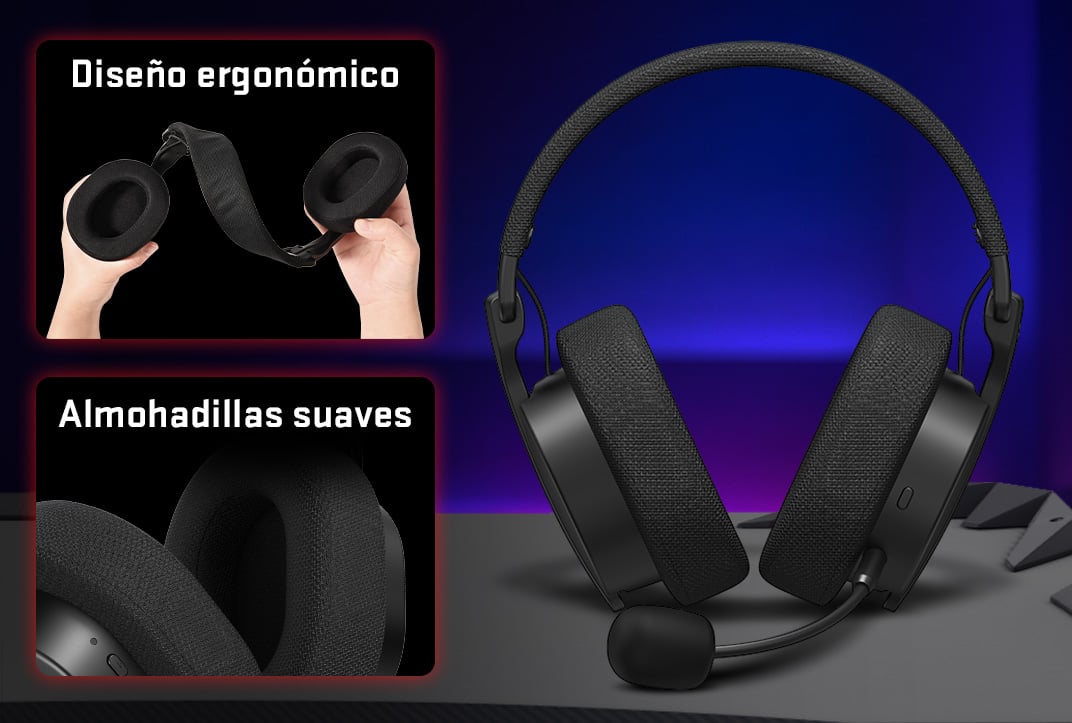 Design leve e flexível, com almofadas auriculares macias. Tudo concebido para oferecer total conforto durante sessões de jogo prolongadas ou utilização diária sem pressão.