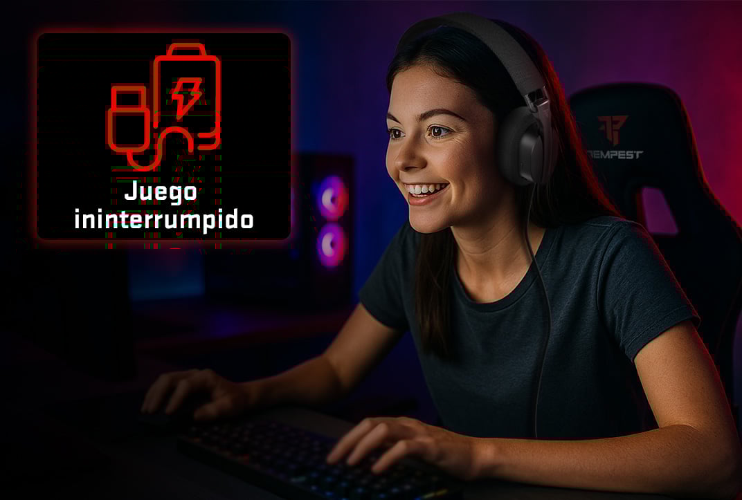 - Som que te envolve no jogo. O seu sistema de som de alta precisão realça cada detalhe: passos, recargas, explosões... e até as tuas faixas favoritas entre as partidas. Impacto, clareza e profundidade para que não perca nada.