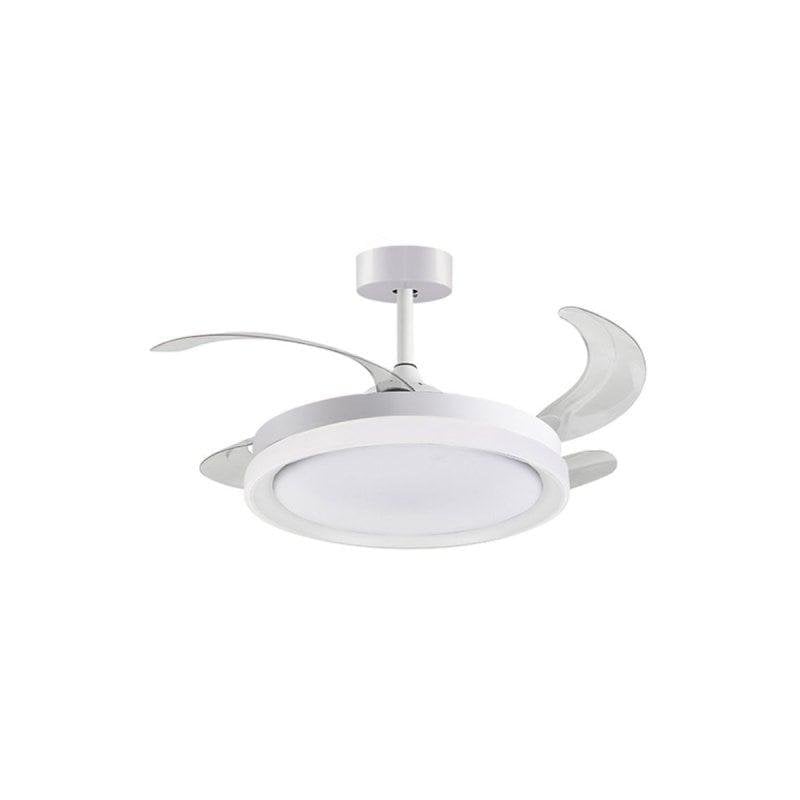 Materiais premium e design compacto. Construído em metal, acrílico, metacrilato e PC, combina robustez e elegância. O diâmetro de 91 cm (pás abertas) e 40 cm (pás recolhidas) adapta-se a diversos espaços, sempre com certificação CE.